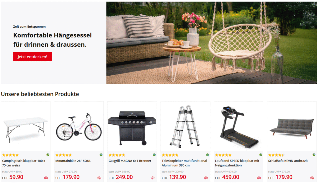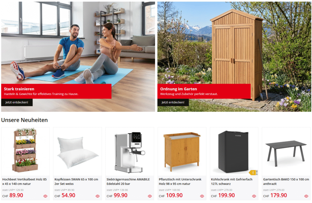 gonser is a Swiss online store that offers thousands of products across several categories including home improvement, outdoor living, sports equipment, electronics, and lifestyle accessories.